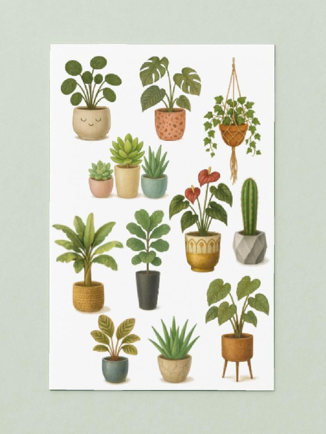 Tover je notitieboek om tot een groene oase met dit sfeervolle stickervel. De gedetailleerde illustraties van diverse kamerplanten van Rozeka zorgen direct voor rust en inspiratie in elke planning.